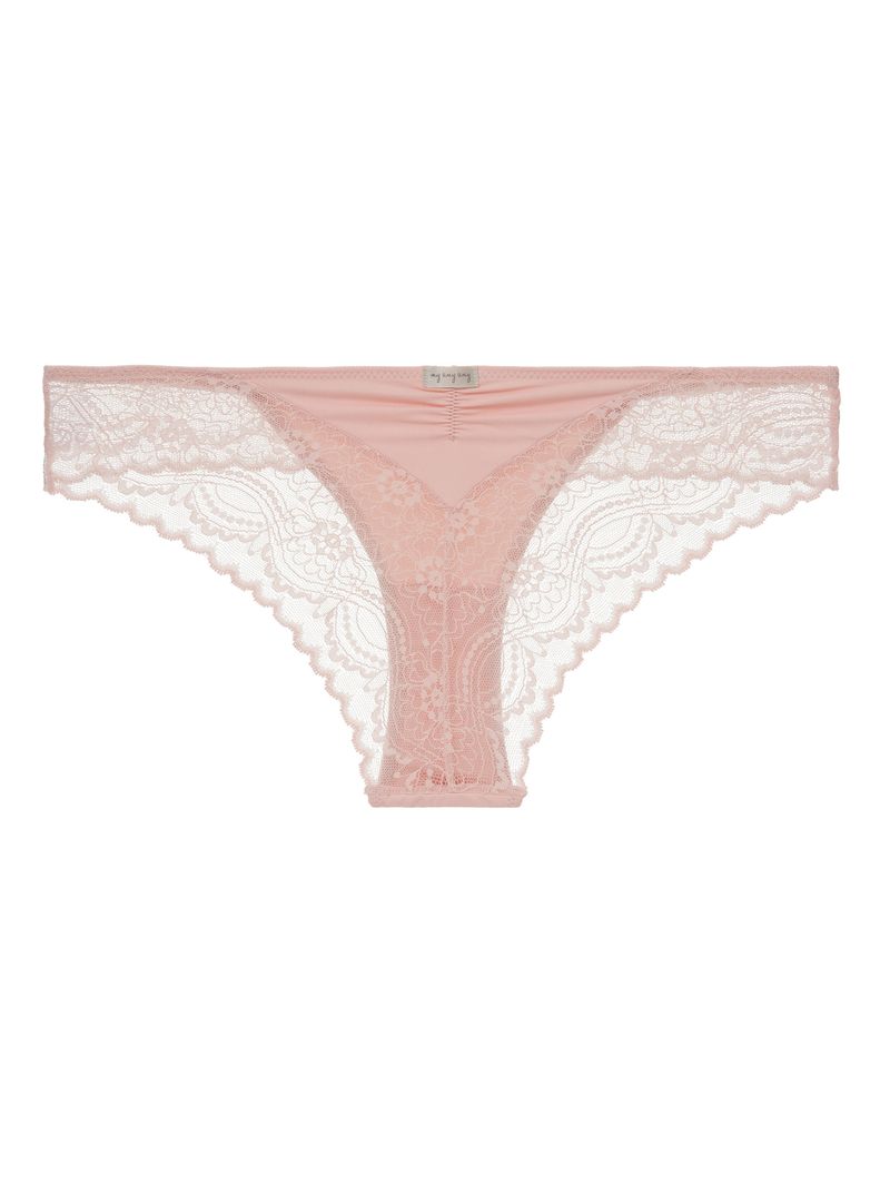 • Parte frontal em tecido macio, com laterais em renda delicada;