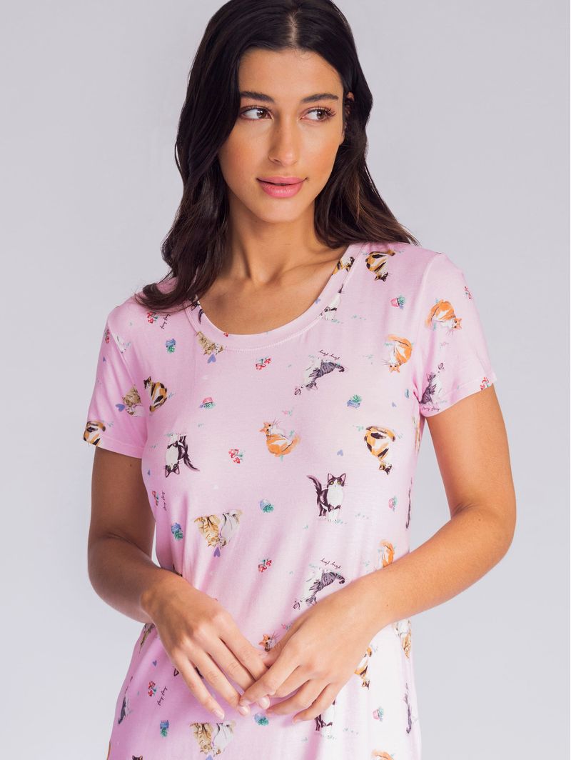 Camisola Cats Aquarela Any Any, a combinação perfeita daquilo que amamos: pijamas, gatinhos e conforto! Um modelo leve e delicado para momentos de descanso, com estampa super fofa.