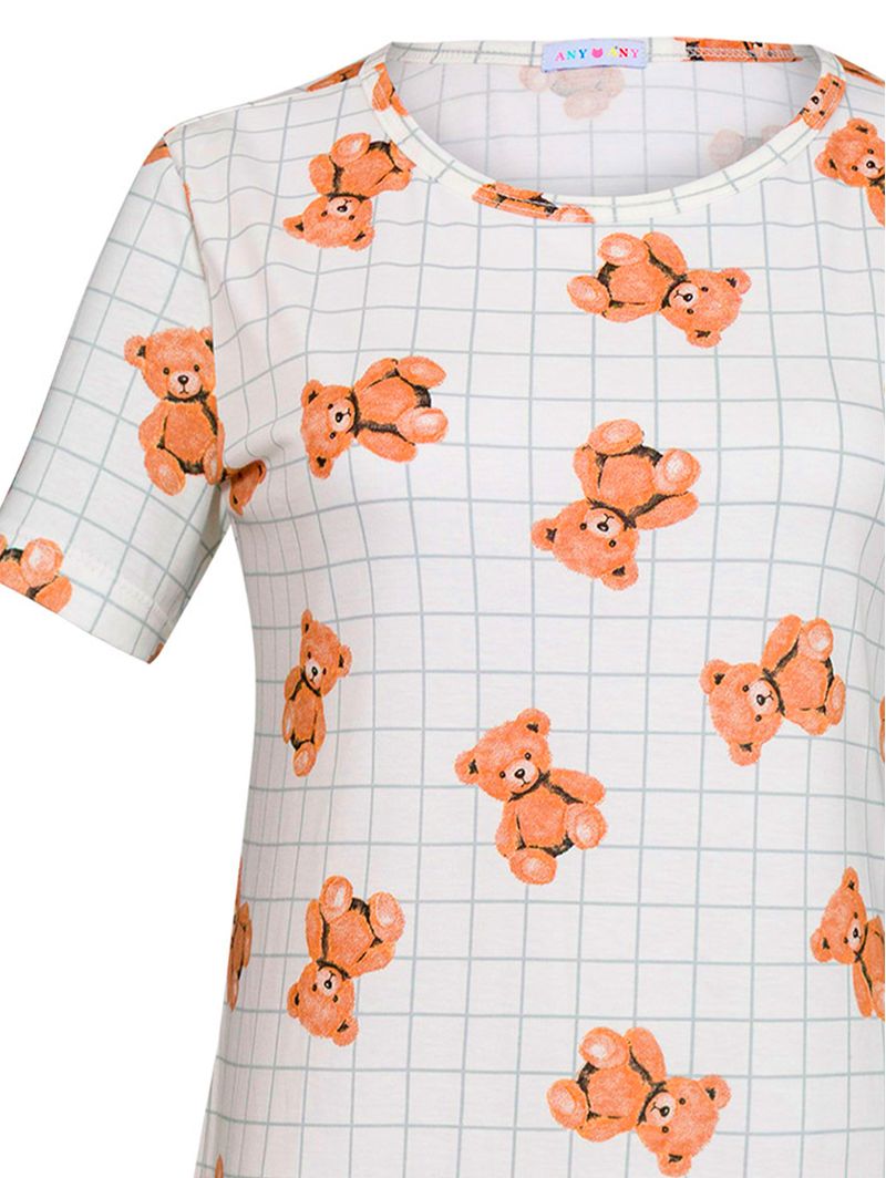 • Estampa: padrão quadriculado com ursinhos de pelúcia por toda a peça, trazendo um toque lúdico e adorável;