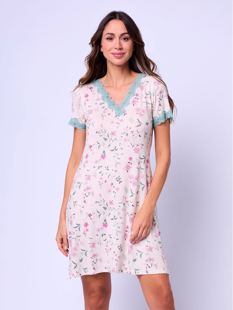 • Modelo de manga curta com delicada aplicação de renda, ideal para quem busca praticidade sem abrir mão da elegância;