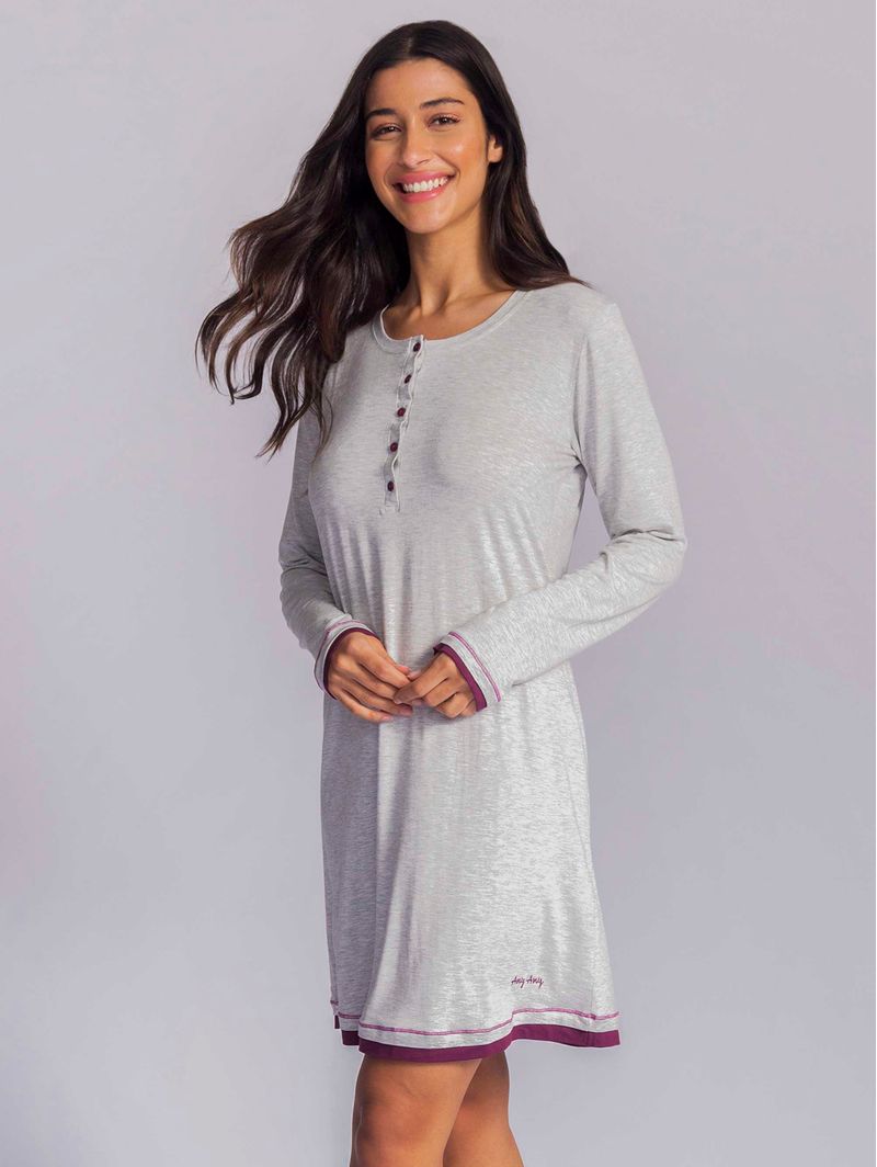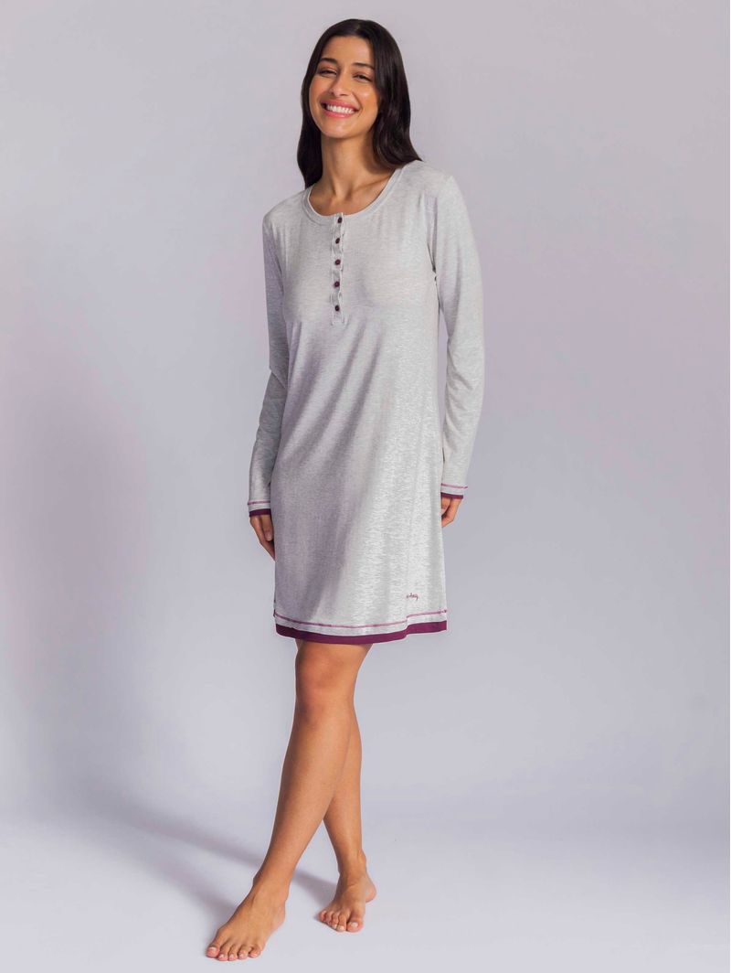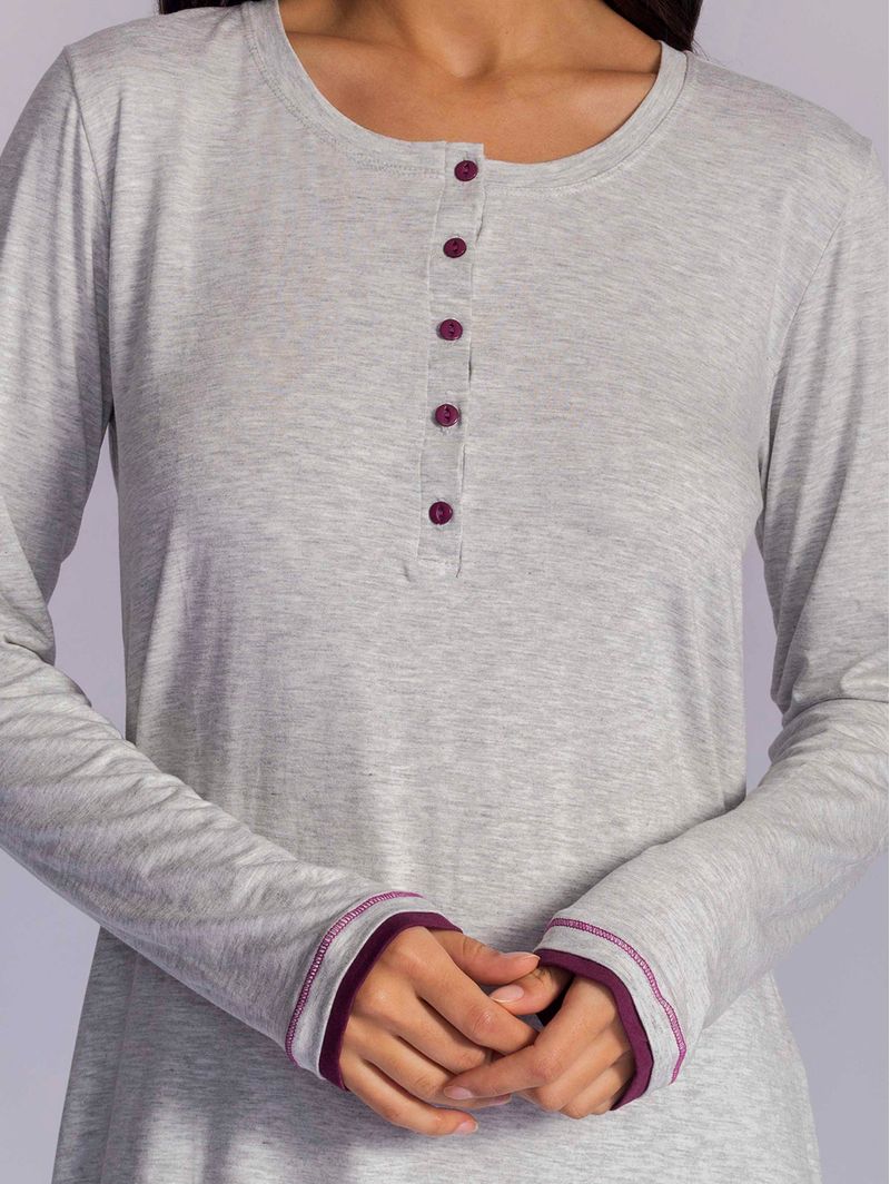 • Detalhe charmoso de sobreposição e overloque, em cor contrastante nas mangas e na barra;