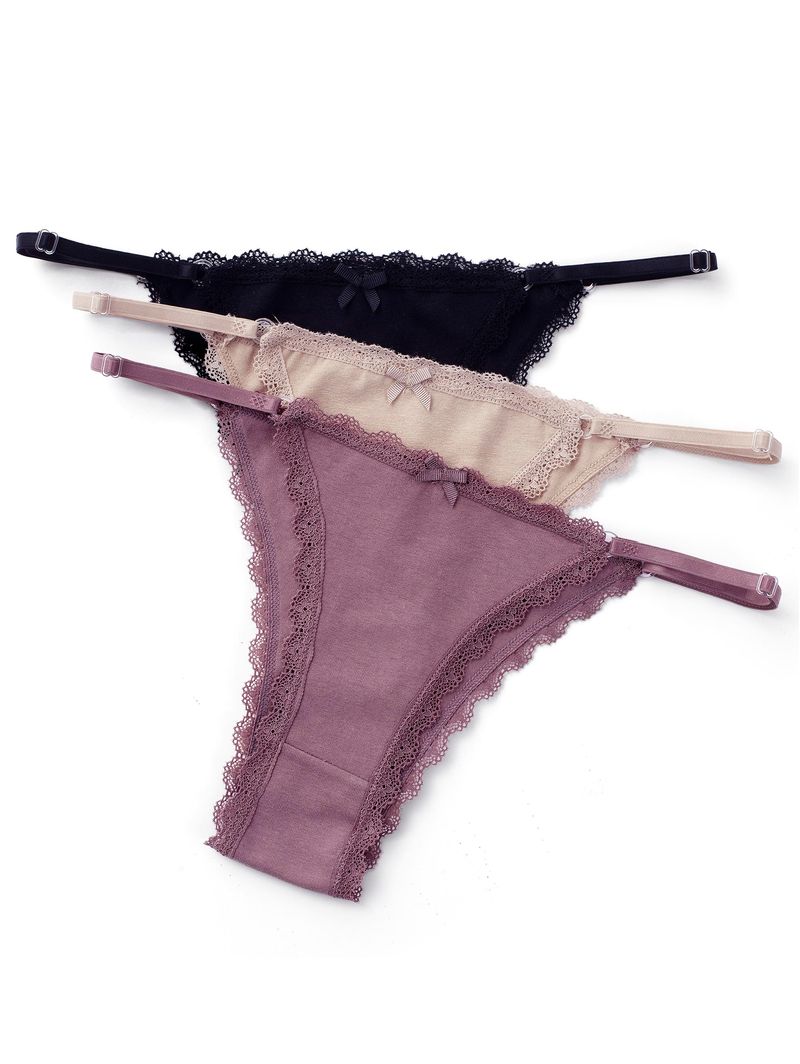 O Kit de Calcinhas String Confort Uva Any Any, são caracterizadas pelas tiras nas laterais, que podem ser ajustadas, proporcionando o conforto que você precisa!