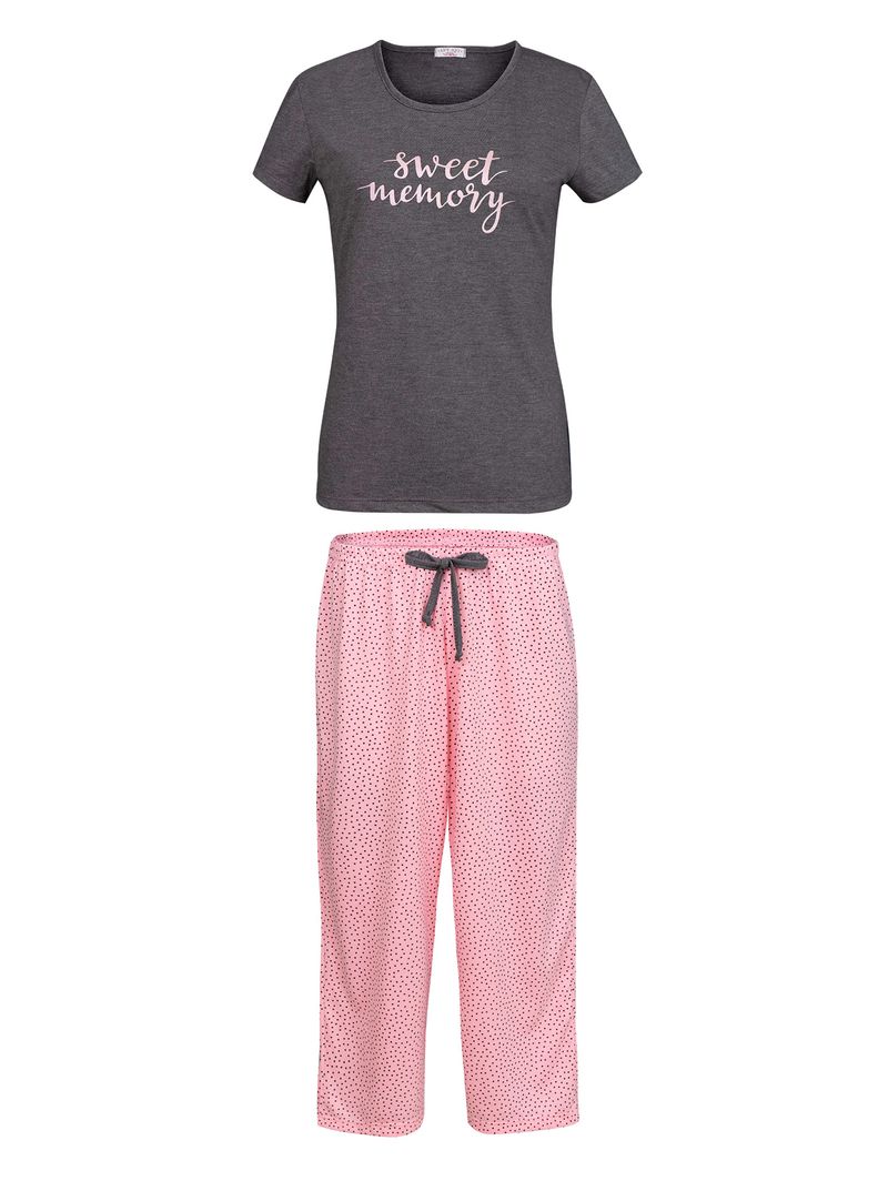 O Pijama Capri Poá Rosa Any Any é a junção perfeita entre leveza e o charme casual.