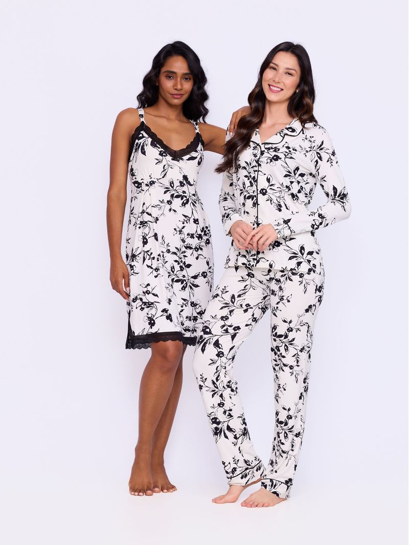 • Estampa floral elegante, que traz delicadeza e um toque moderno ao visual, criando um pijama cheio de personalidade;