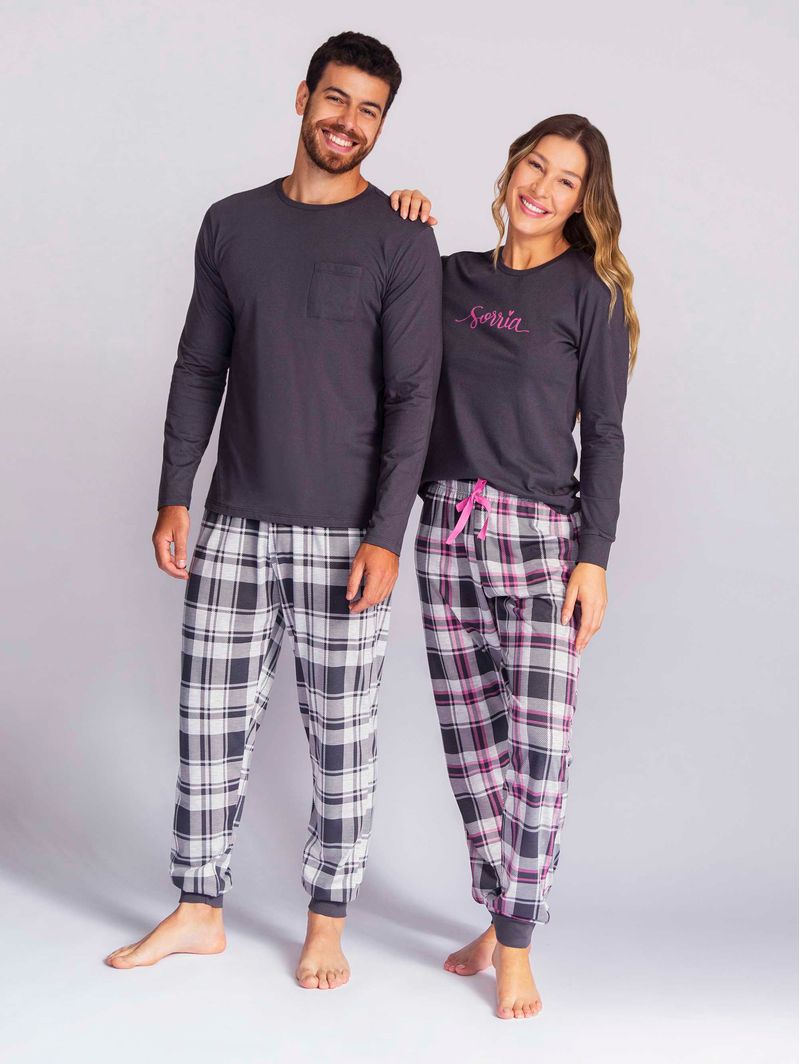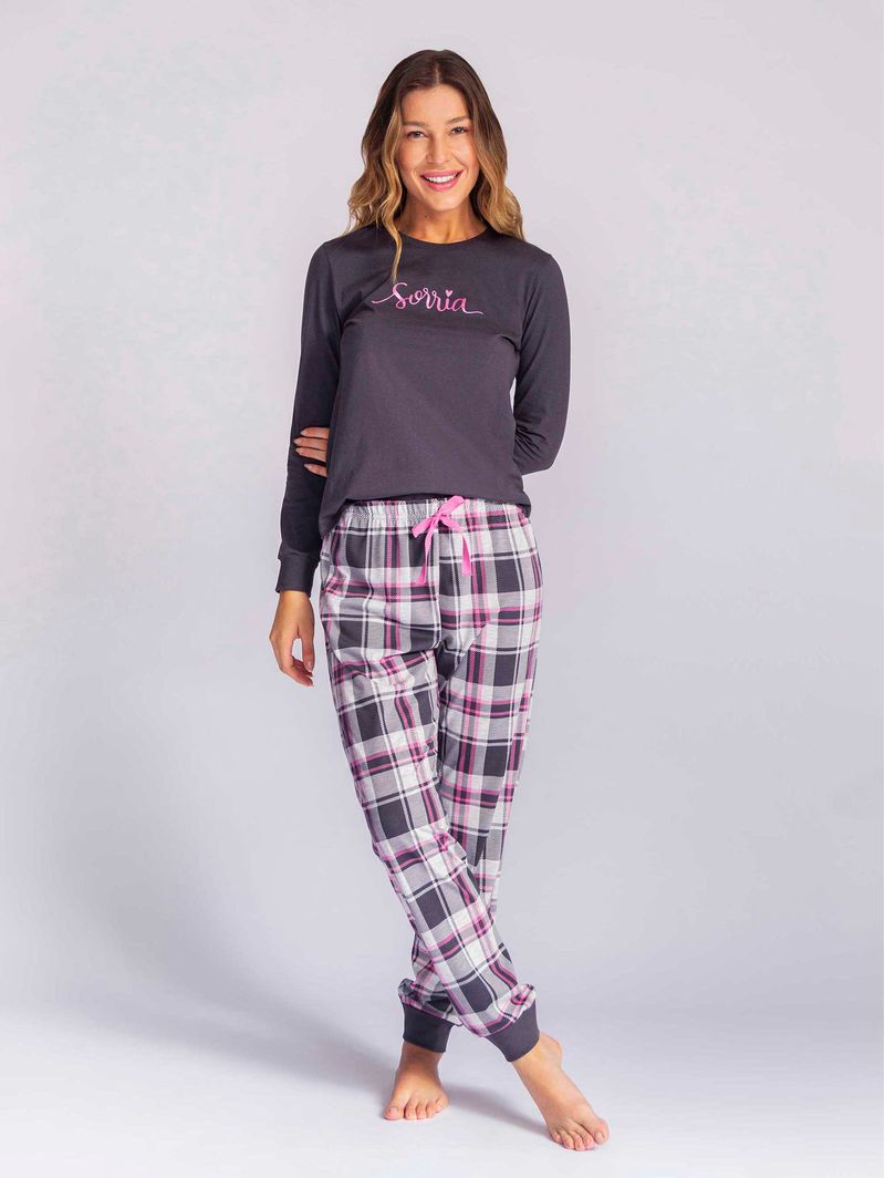 Pijama Feminino Sorria Any Any, combinação perfeita para noites em família! Com estampa xadrez clássica e tecido leve, esse pijama oferece muito estilo e conforto para os momentos especiais.
