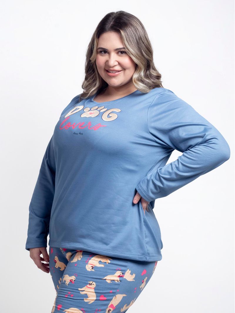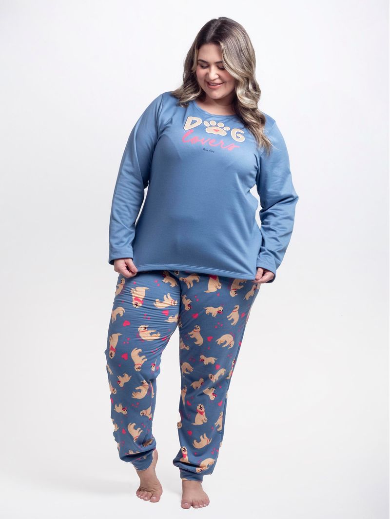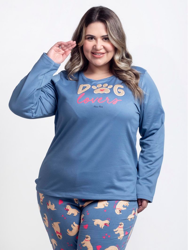 Pijama Plus Size Dog Lovers Any Any, produzido em tecido de toque macio e com estampa super fofa, garantindo mais conforto e estilo para suas noites de inverno.