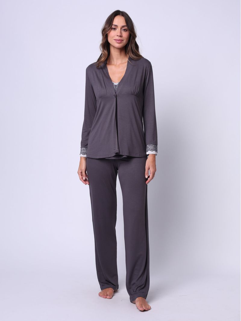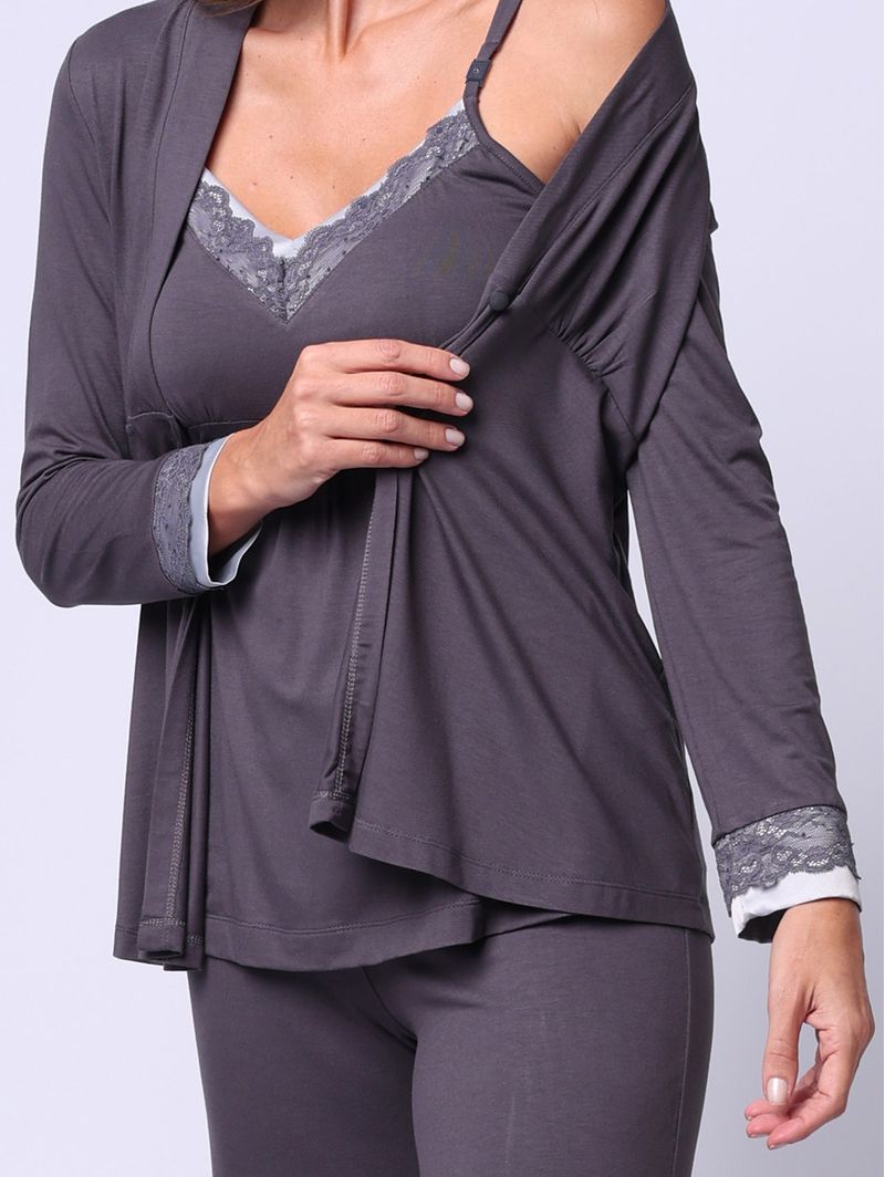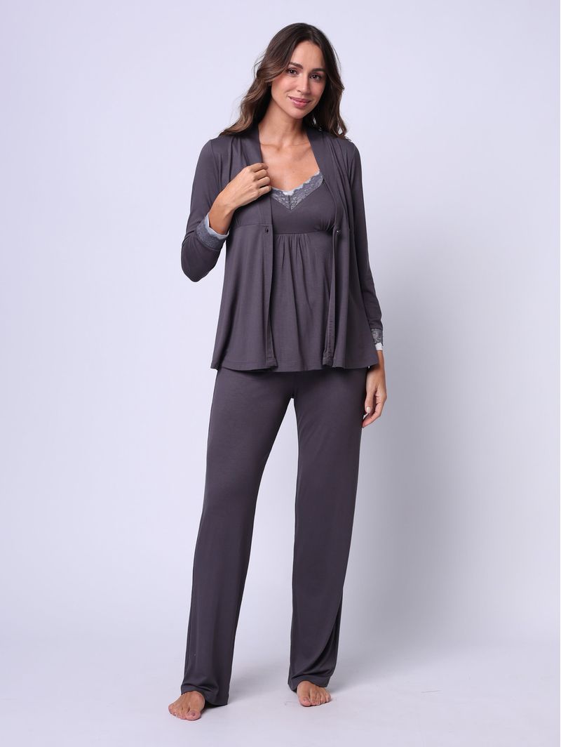 O Pijama Trio Maternidade Isabelle Any Any foi desenvolvido para oferecer praticidade, conforto e sofisticação em um só conjunto.