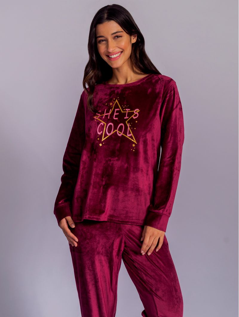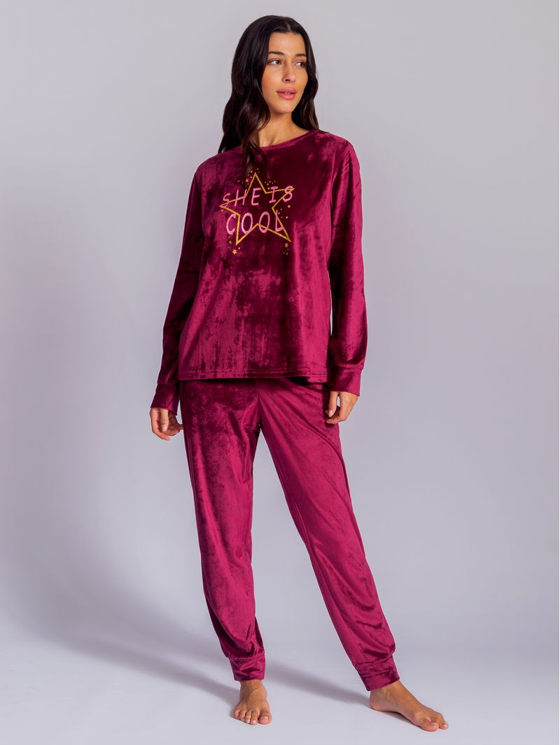 • Pijama em Plush de toque ultra macio, com textura suave e similar a um veludo, oferece a sensação de aconchego e suavidade para a pele. A cor vibrante deste modelo é perfeita para quem valoriza não apenas o conforto, mas também um design moderno e cheio de estilo.