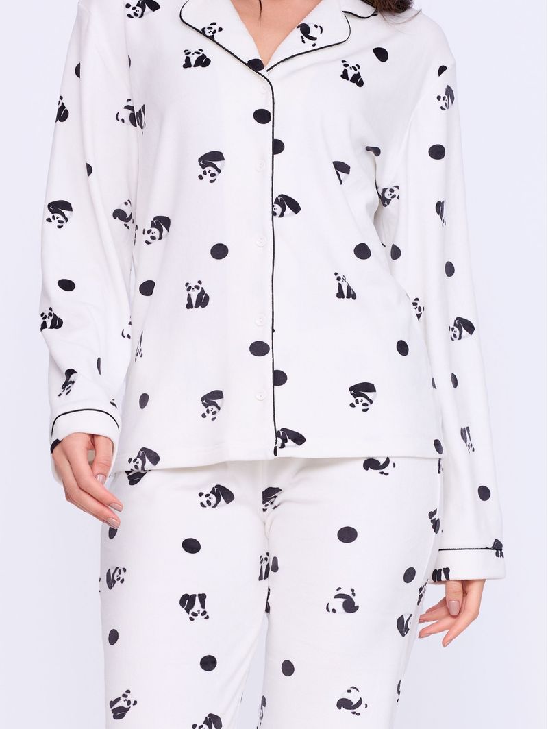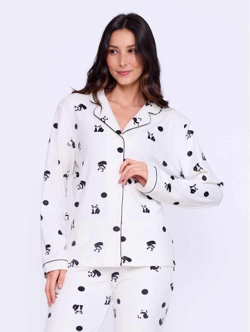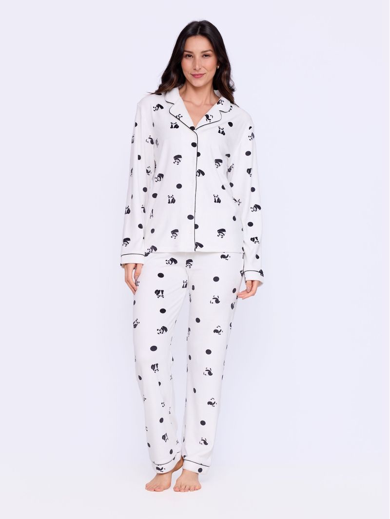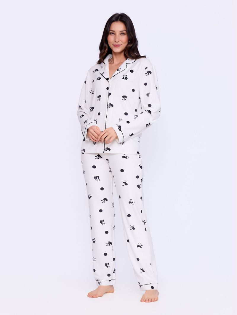 Acabamento em cor contrastante e estampa de pandas e poás, o Pijama Sleep Panda é perfeito para quem não abre mão da elegância e conforto mesmo nos momentos de descanso.