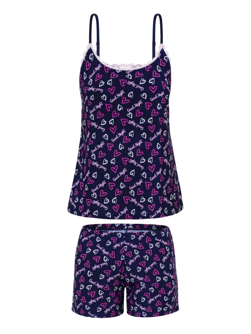 • Estampa corrida de corações e frase "Good Night", tradução: Boa Noite;