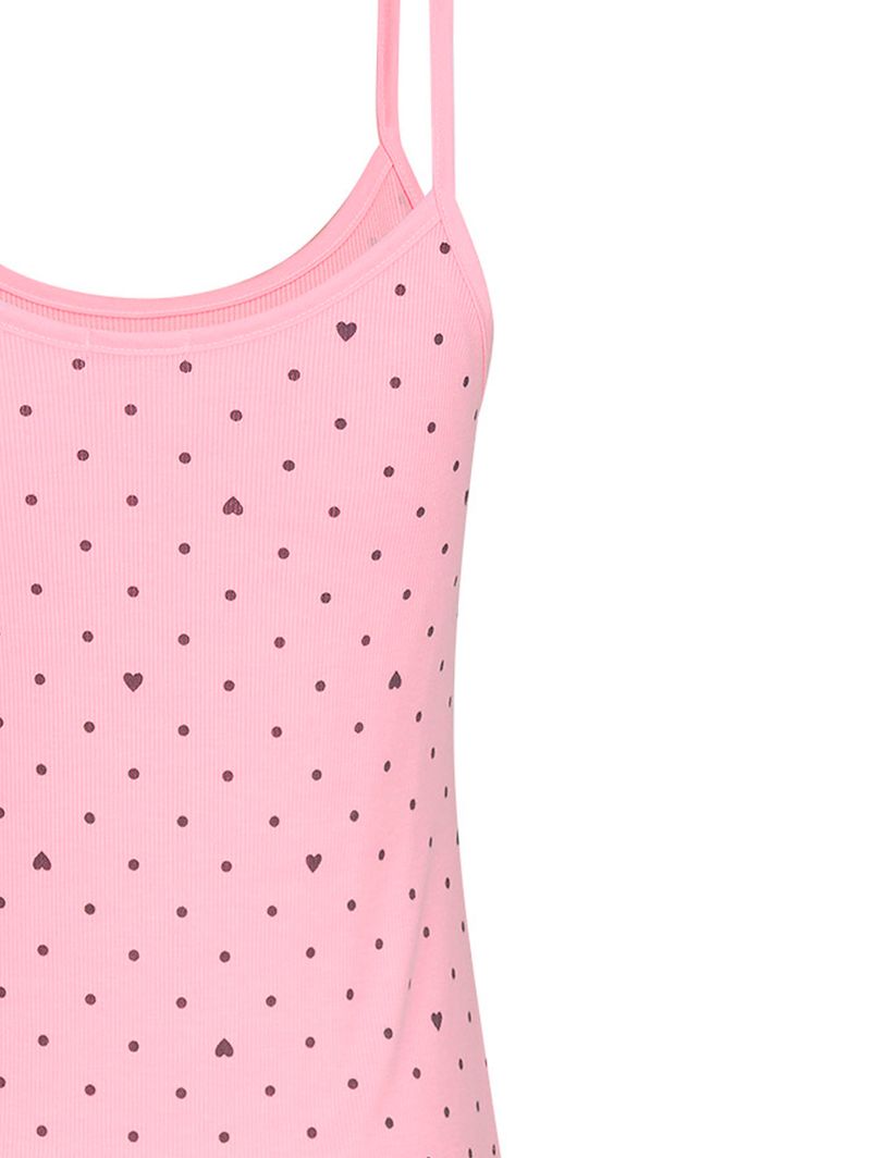 • Estampa delicada de pequenos corações e poás;