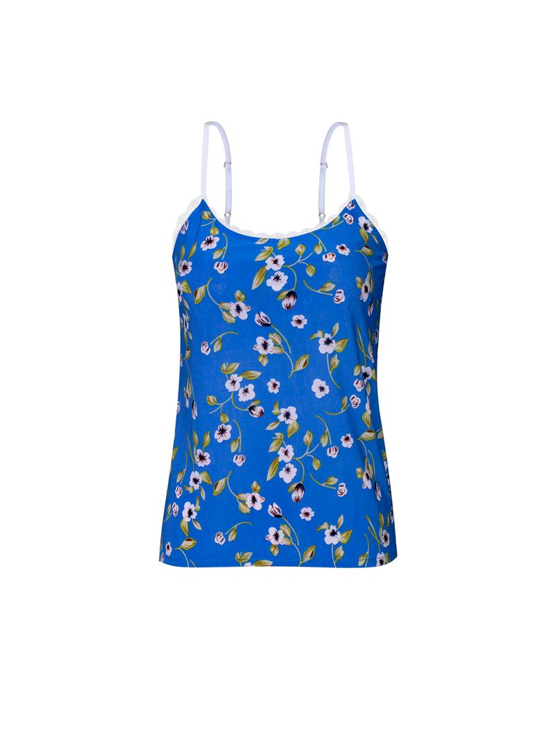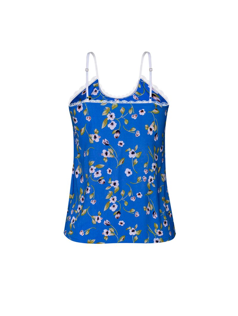 • Estampa: floral delicado sobre fundo azul, trazendo leveza, frescor e um visual alegre;