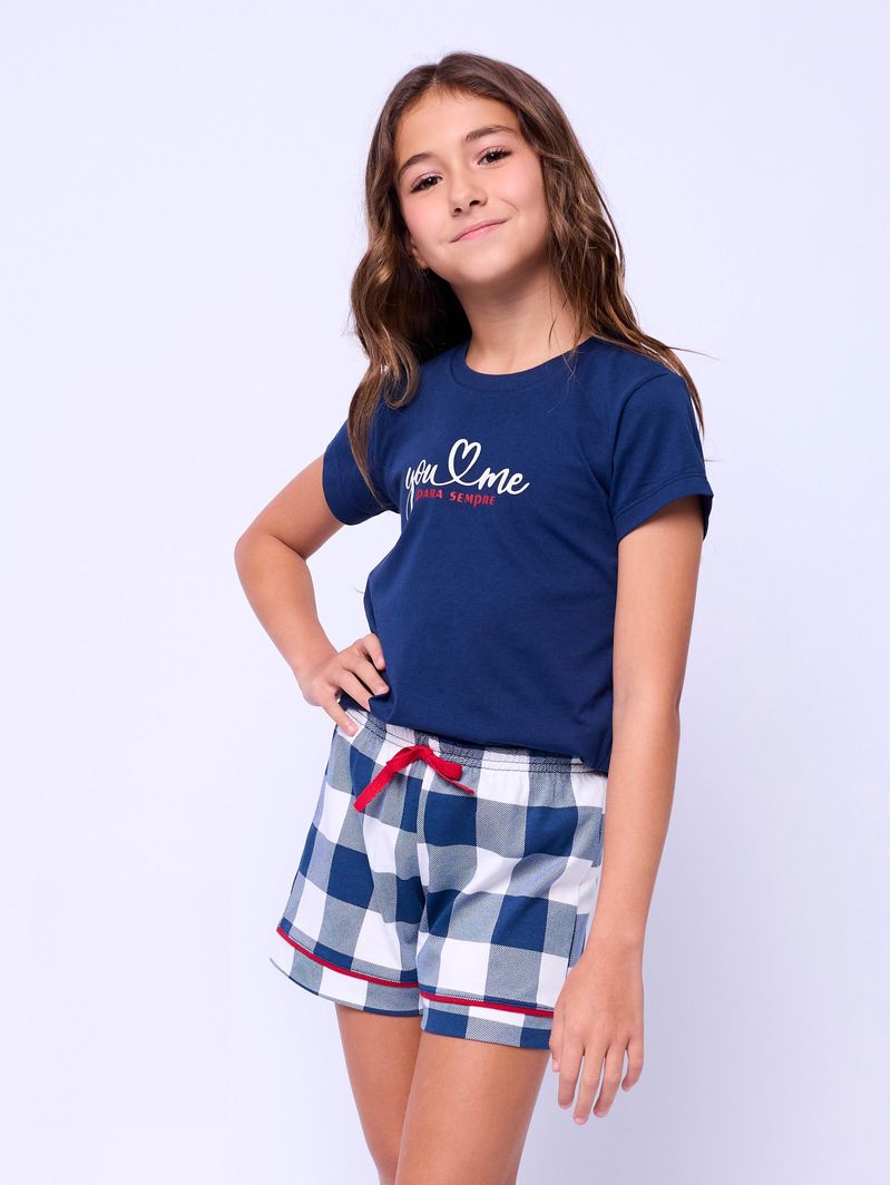 • Blusa: manga curta com gola redonda e detalhe interno no mesmo xadrez do short - um toque de charme e conforto para os dias mais quentes;
