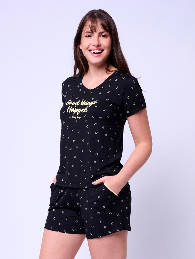 • Modelo curto com manga curta, perfeito para as noites mais quentes;