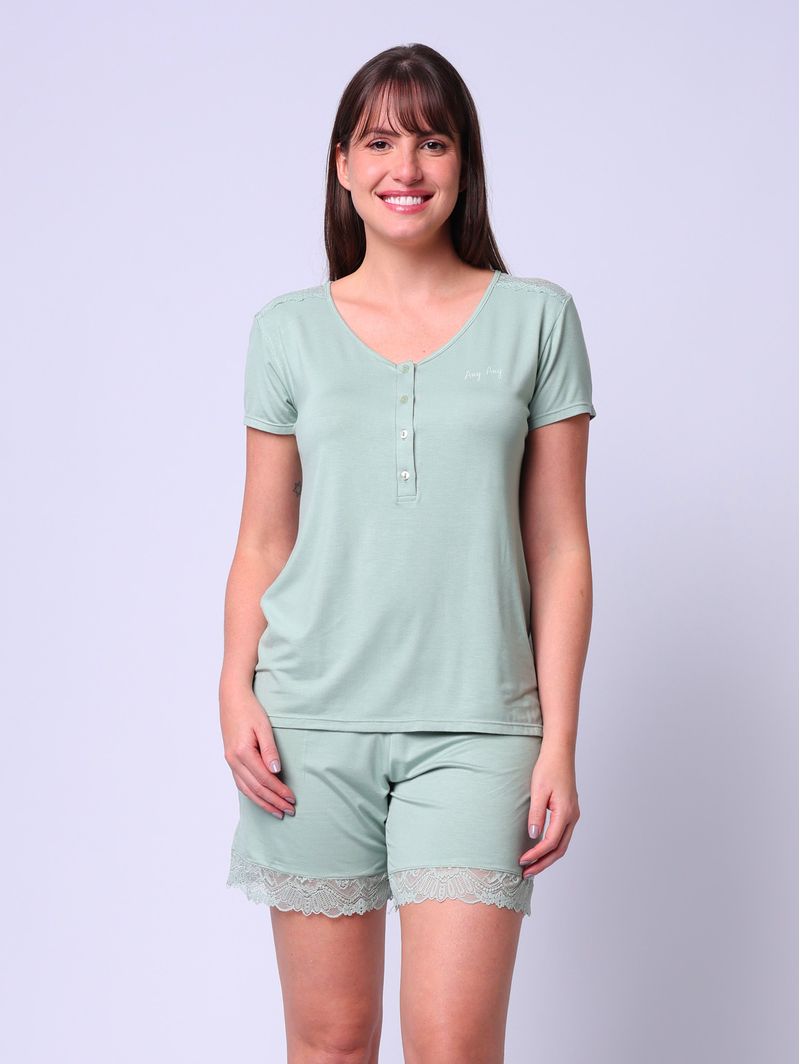 • Acabamento em renda na barra do short, adicionando delicadeza ao conjunto;