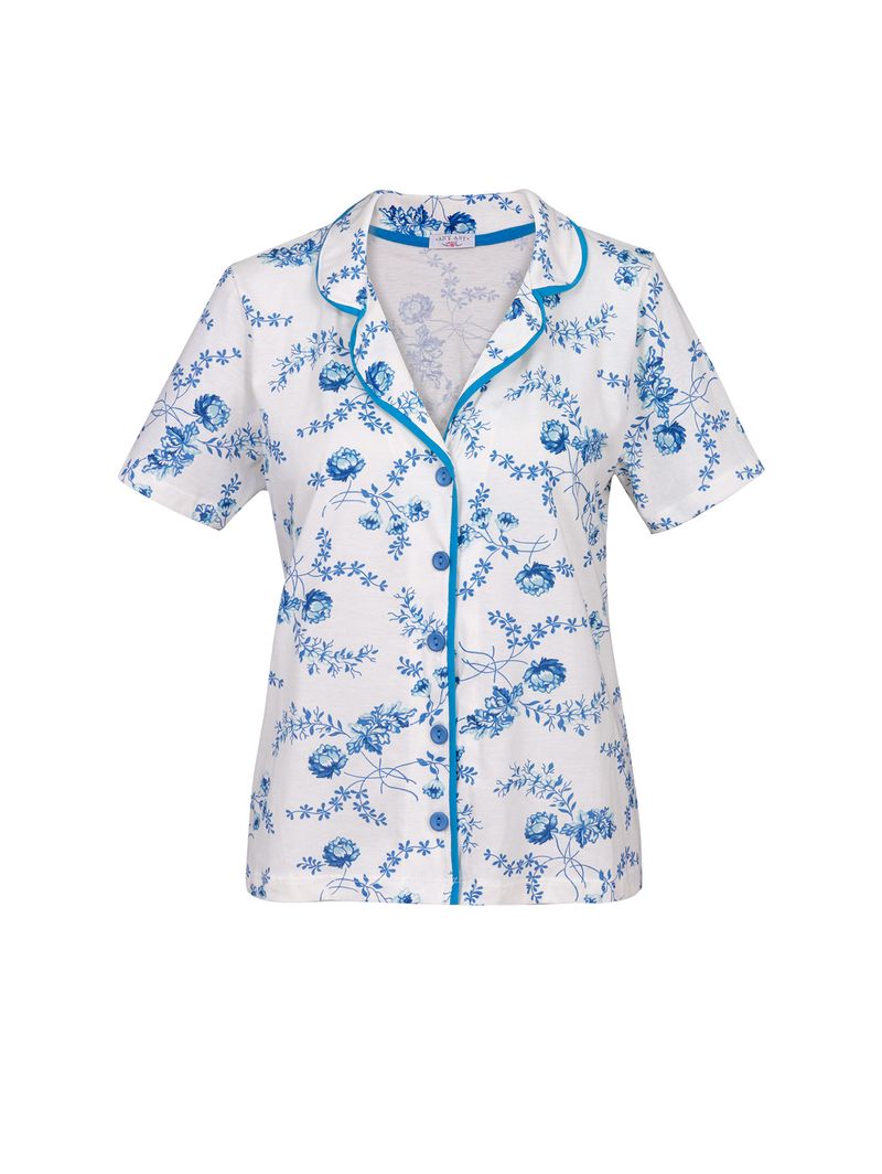 • Estampa floral em tons de azul sobre fundo claro, trazendo frescor e suavidade;