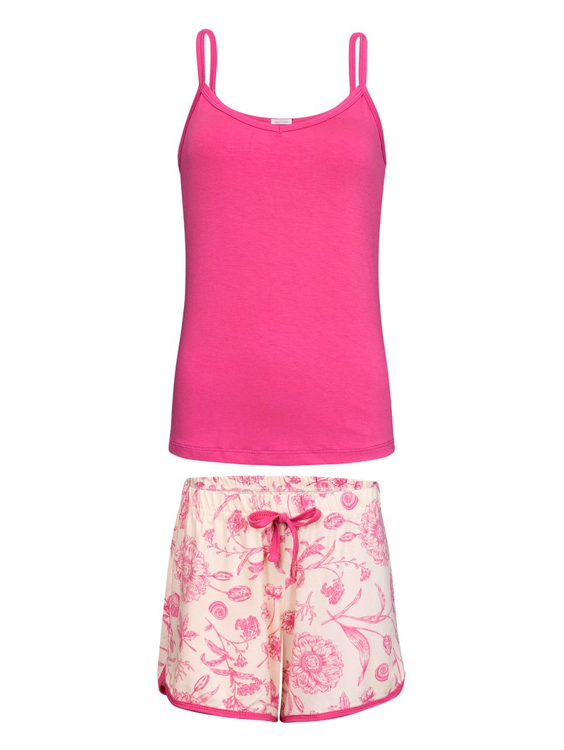 • Short: com estampa floral delicada, trazendo suavidade e um toque romântico ao conjunto;