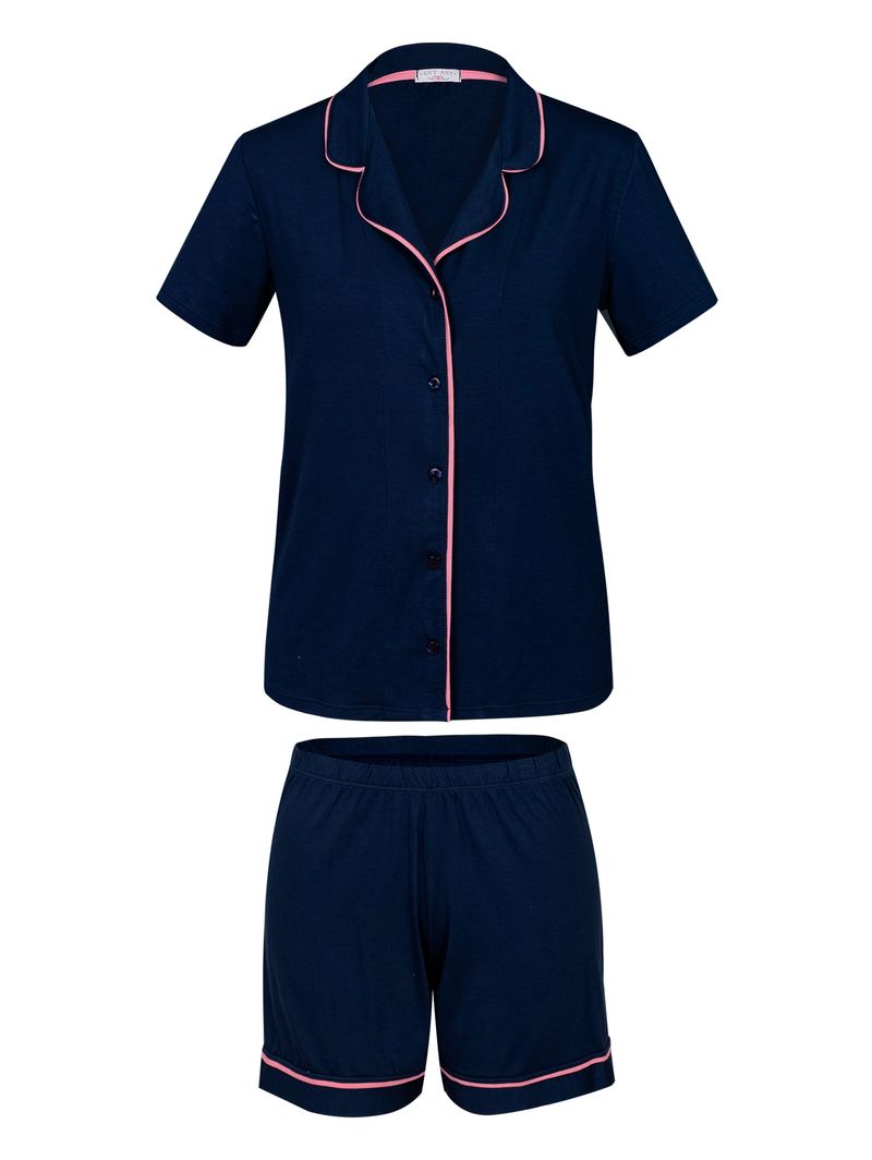 Short Doll Maria Joana Any Any - Clássico, elegante e extremamente confortável para suas noites. Modelo em Azul marinho, com acabamento em cor contrastante, garantindo sofisticação ao conjunto!